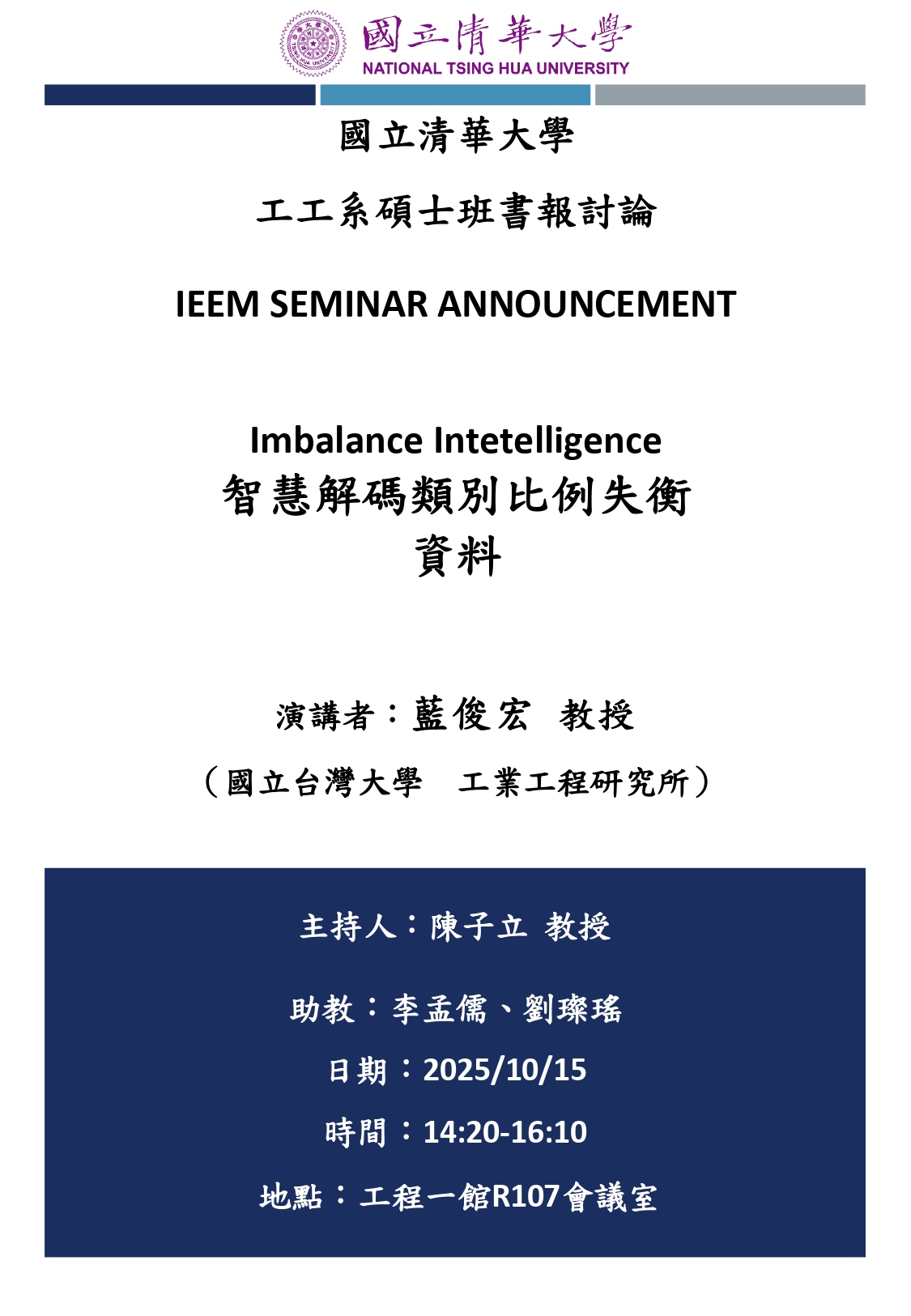智慧解碼類別比例失衡資料 演講者:藍俊宏 教授(國立台灣大學 工業工程研究所)