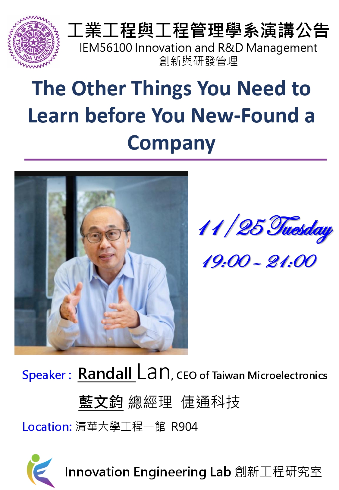 The Other Things You Need to Learn before You New-Found a Company 講者:藍文鈞 總經理 (倢通科技)